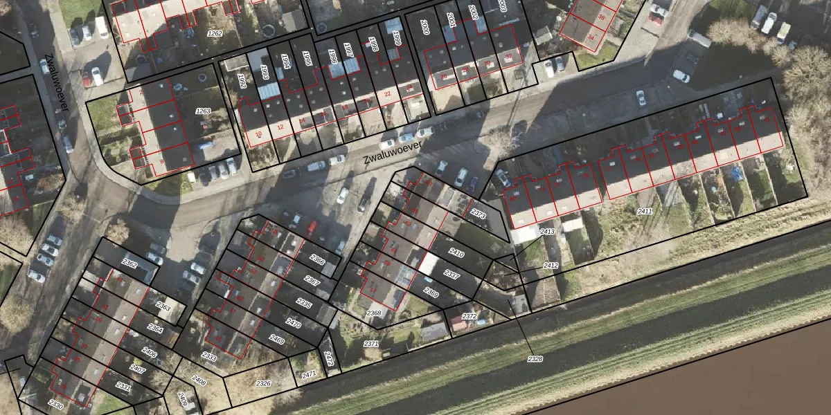 Zwaluwoever 65 is gelegen op kadastraal perceel DZL01K2411. Deze kadastrale aanduiding is uniek en wordt gebruikt door het Kadaster om eigendomsrechten en andere zakelijke rechten vast te leggen. Het perceel maakt onderdeel uit van de kadastrale gemeente Delfzijl.