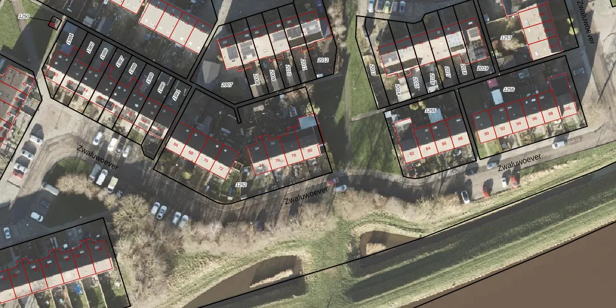 Het perceel waarop Zwaluwoever 80 staat heeft een oppervlakte van 1475 m². Dit is een zeer groot perceel. De perceeloppervlakte wordt geregistreerd door het Kadaster. Gedetailleerde informatie over de maten van dit perceel kunt u vinden in het rapport Kadastrale kaart met maatvoering van Zwaluwoever 80.