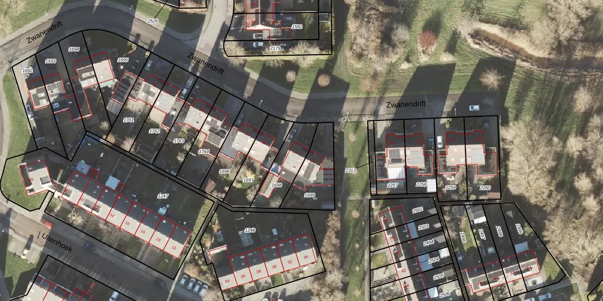 Gebruik de zoekbalk of klik op een perceel voor informatie over de adressen binnen dit perceel.