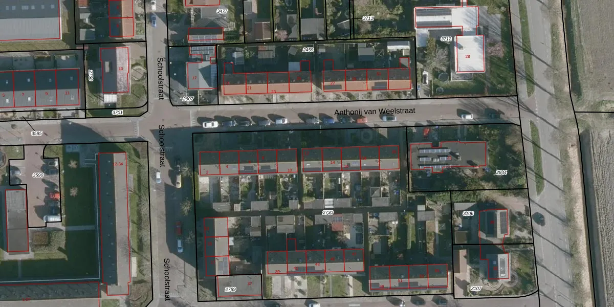 Anthonij van Weelstraat 12 is gelegen op kadastraal perceel BML03B2730. Deze kadastrale aanduiding is uniek en wordt gebruikt door het Kadaster om eigendomsrechten en andere zakelijke rechten vast te leggen. Het perceel maakt onderdeel uit van de kadastrale gemeente Den Bommel.