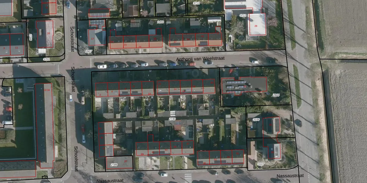 Anthonij van Weelstraat 16 is gelegen op kadastraal perceel BML03B2730. Deze kadastrale aanduiding is uniek en wordt gebruikt door het Kadaster om eigendomsrechten en andere zakelijke rechten vast te leggen. Het perceel maakt onderdeel uit van de kadastrale gemeente Den Bommel.