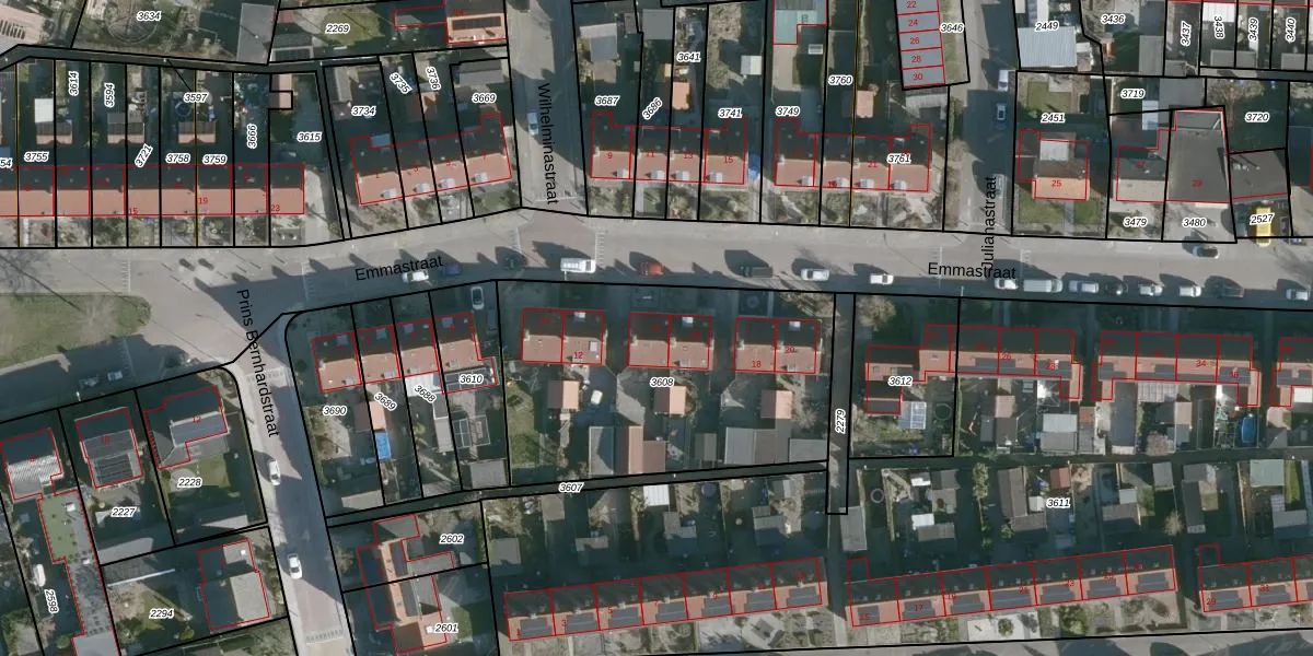 Emmastraat 14 is gelegen op kadastraal perceel BML03B3608. Deze kadastrale aanduiding is uniek en wordt gebruikt door het Kadaster om eigendomsrechten en andere zakelijke rechten vast te leggen. Het perceel maakt onderdeel uit van de kadastrale gemeente Den Bommel.