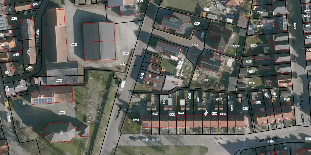 Kerklaan 19 is gelegen op kadastraal perceel BML03B2671. Deze kadastrale aanduiding is uniek en wordt gebruikt door het Kadaster om eigendomsrechten en andere zakelijke rechten vast te leggen. Het perceel maakt onderdeel uit van de kadastrale gemeente Den Bommel.