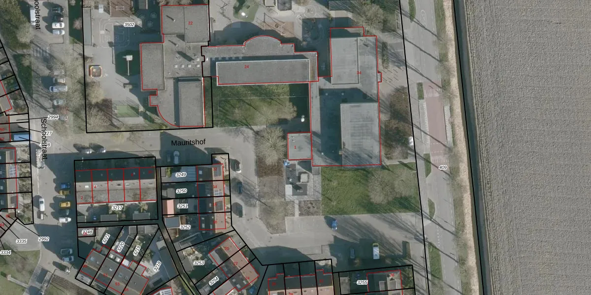 Het perceel waarop Mauritshof 1 staat heeft een oppervlakte van 3,7 ha. Dit is een zeer groot perceel. De perceeloppervlakte wordt geregistreerd door het Kadaster. Gedetailleerde informatie over de maten van dit perceel kunt u vinden in het rapport Kadastrale kaart met maatvoering van Mauritshof 1.