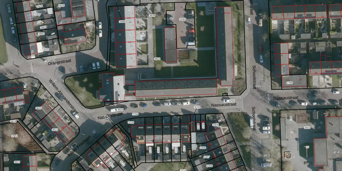 Het perceel waarop Nassaustraat 17 staat heeft een oppervlakte van 4528 m². Dit is een zeer groot perceel. De perceeloppervlakte wordt geregistreerd door het Kadaster. Gedetailleerde informatie over de maten van dit perceel kunt u vinden in het rapport Kadastrale kaart met maatvoering van Nassaustraat 17.