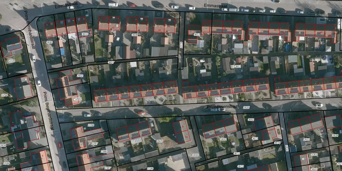 Prinsessenstraat 13 is gelegen op kadastraal perceel BML03B3611. Deze kadastrale aanduiding is uniek en wordt gebruikt door het Kadaster om eigendomsrechten en andere zakelijke rechten vast te leggen. Het perceel maakt onderdeel uit van de kadastrale gemeente Den Bommel.
