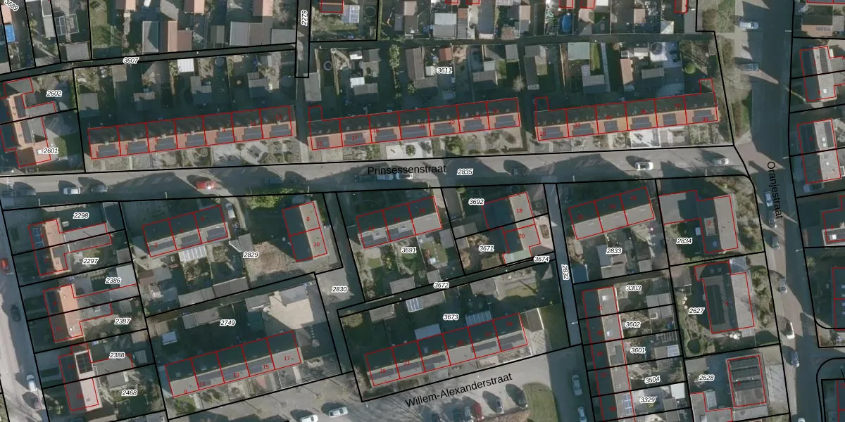 Prinsessenstraat 16 is gelegen op kadastraal perceel BML03B3691. Deze kadastrale aanduiding is uniek en wordt gebruikt door het Kadaster om eigendomsrechten en andere zakelijke rechten vast te leggen. Het perceel maakt onderdeel uit van de kadastrale gemeente Den Bommel.
