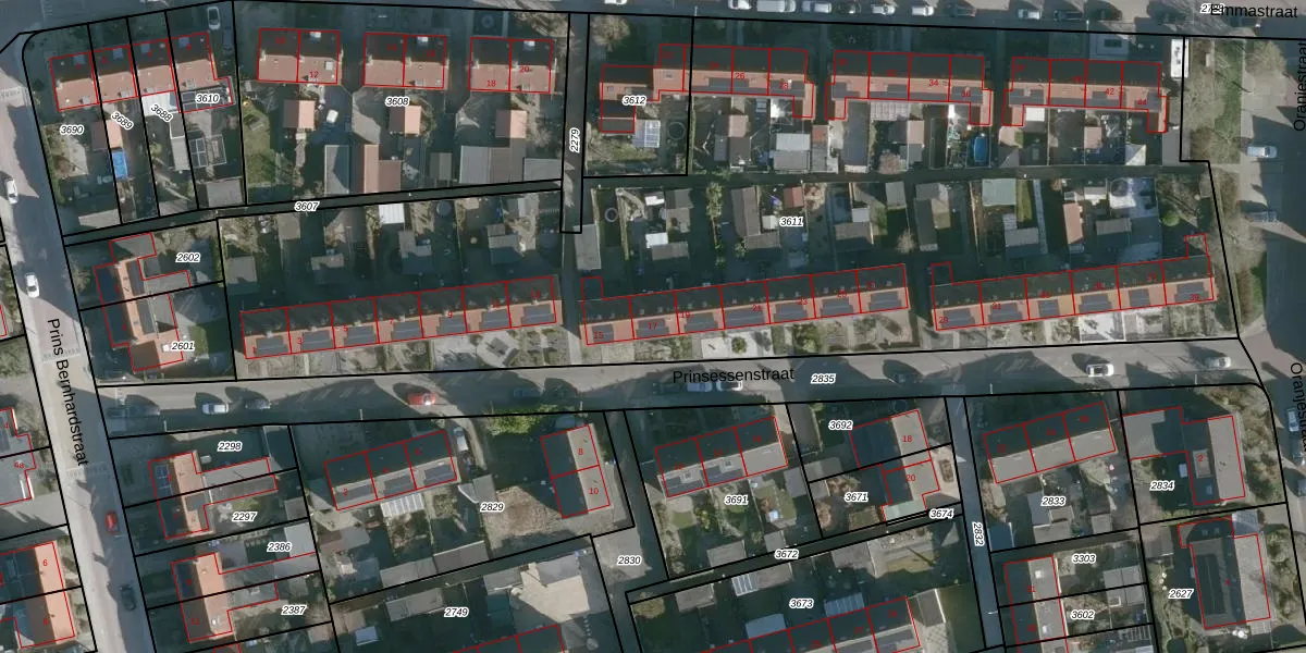 Het perceel waarop Prinsessenstraat 17 staat heeft een oppervlakte van 5701 m². Dit is een zeer groot perceel. De perceeloppervlakte wordt geregistreerd door het Kadaster. Gedetailleerde informatie over de maten van dit perceel kunt u vinden in het rapport Kadastrale kaart met maatvoering van Prinsessenstraat 17.