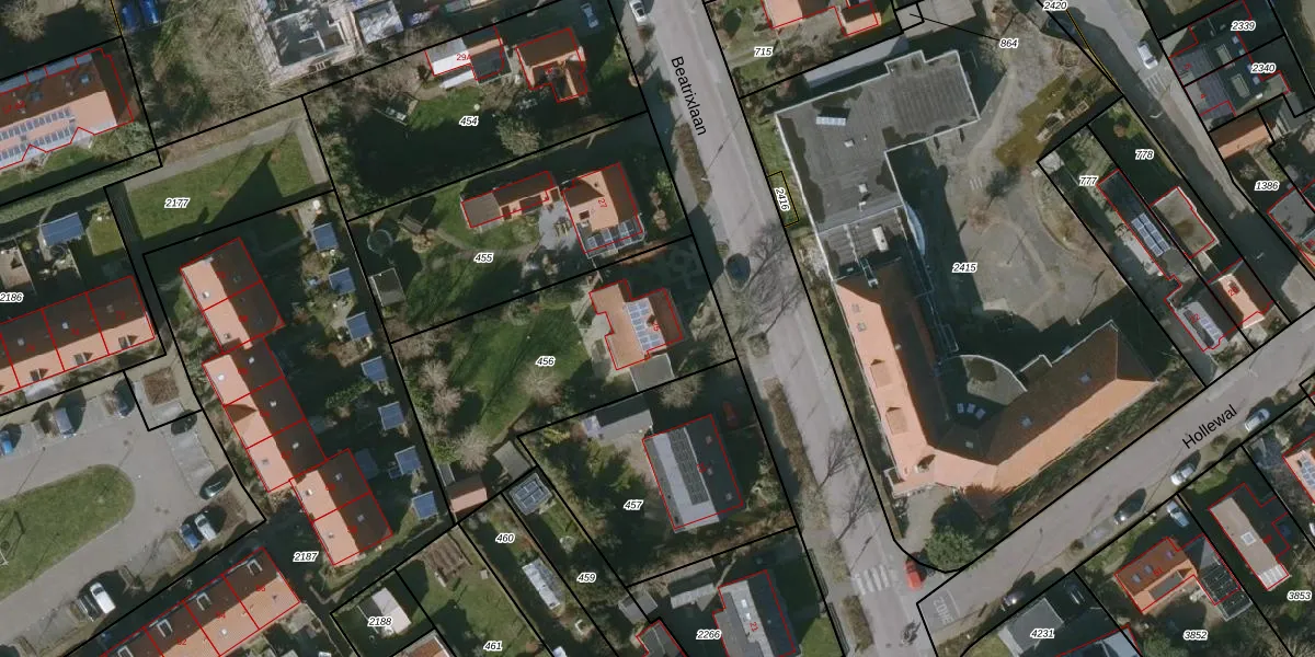 Gebruik de zoekbalk of klik op een perceel voor informatie over de adressen binnen dit perceel.