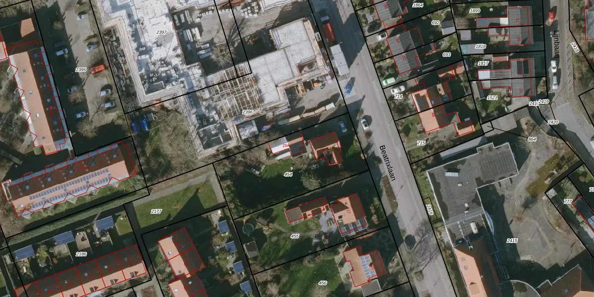 Het perceel waarop Beatrixlaan 29-A staat heeft een oppervlakte van 992 m². Dit is een groot perceel. De perceeloppervlakte wordt geregistreerd door het Kadaster. Gedetailleerde informatie over de maten van dit perceel kunt u vinden in het rapport Kadastrale kaart met maatvoering van Beatrixlaan 29-A.