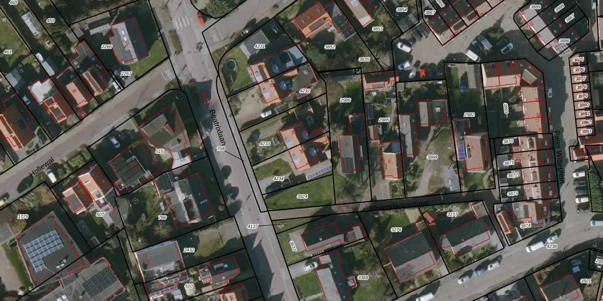 Gebruik de zoekbalk of klik op een perceel voor informatie over de adressen binnen dit perceel.