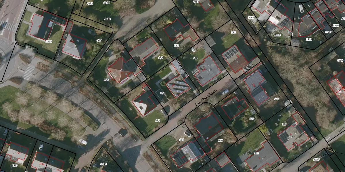 Het perceel waarop Bernhardlaan 162 staat heeft een oppervlakte van 559 m². Dit is een groot perceel. De perceeloppervlakte wordt geregistreerd door het Kadaster. Gedetailleerde informatie over de maten van dit perceel kunt u vinden in het rapport Kadastrale kaart met maatvoering van Bernhardlaan 162.
