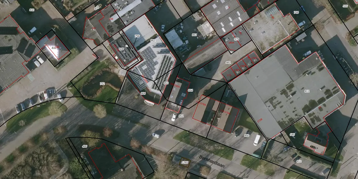 Bernhardlaan 182-A is gelegen op kadastraal perceel TEL00S854. Deze kadastrale aanduiding is uniek en wordt gebruikt door het Kadaster om eigendomsrechten en andere zakelijke rechten vast te leggen. Het perceel maakt onderdeel uit van de kadastrale gemeente Texel.