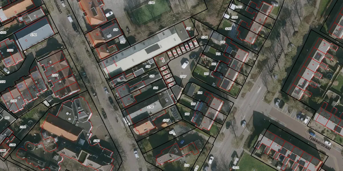 Het perceel waarop Bernhardlaan 5-A staat heeft een oppervlakte van 17 m². Dit is een klein perceel. De perceeloppervlakte wordt geregistreerd door het Kadaster. Gedetailleerde informatie over de maten van dit perceel kunt u vinden in het rapport Kadastrale kaart met maatvoering van Bernhardlaan 5-A.