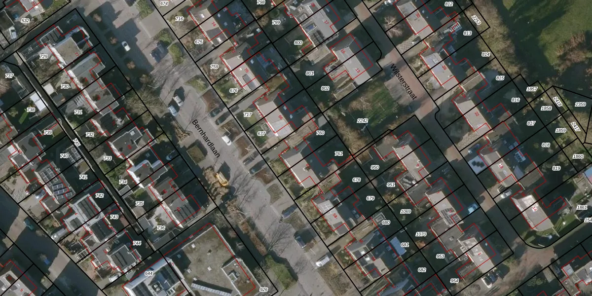 Gebruik de zoekbalk of klik op een perceel voor informatie over de adressen binnen dit perceel.