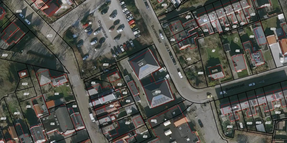 Het perceel waarop Burdetstraat 4 staat heeft een oppervlakte van 1355 m². Dit is een zeer groot perceel. De perceeloppervlakte wordt geregistreerd door het Kadaster. Gedetailleerde informatie over de maten van dit perceel kunt u vinden in het rapport Kadastrale kaart met maatvoering van Burdetstraat 4.