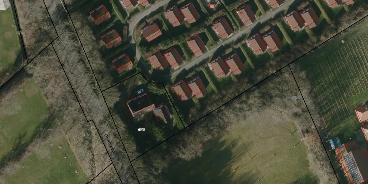 Het perceel waarop Grensweg 38 staat heeft een oppervlakte van 5,5 ha. Dit is een zeer groot perceel. De perceeloppervlakte wordt geregistreerd door het Kadaster. Gedetailleerde informatie over de maten van dit perceel kunt u vinden in het rapport Kadastrale kaart met maatvoering van Grensweg 38.