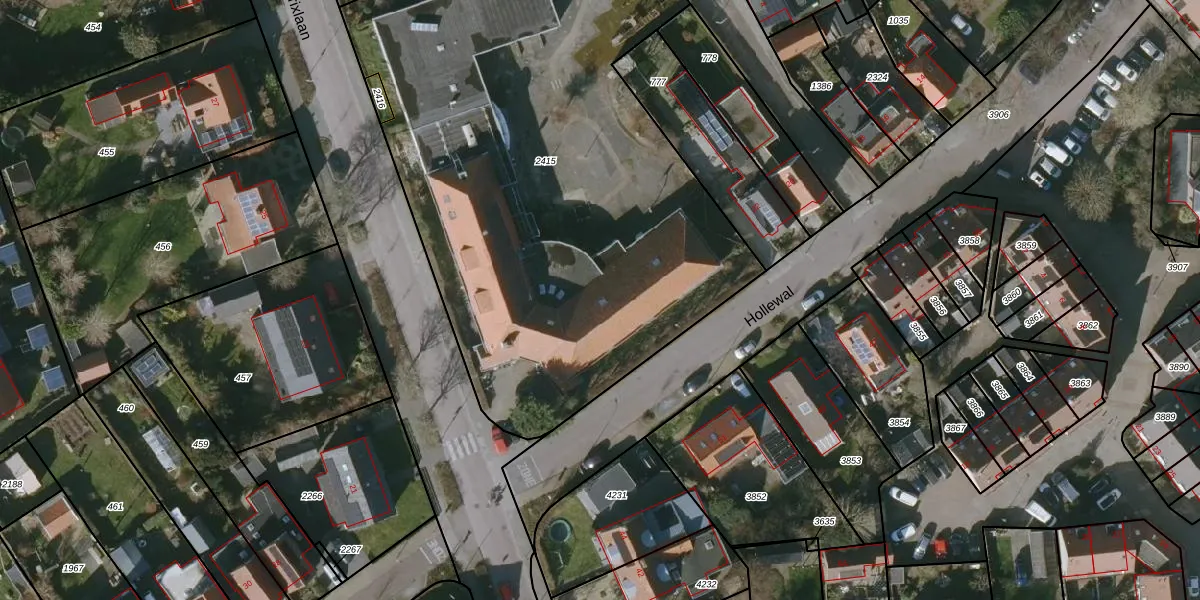 Het perceel waarop Hollewal 24-F staat heeft een oppervlakte van 3614 m². Dit is een zeer groot perceel. De perceeloppervlakte wordt geregistreerd door het Kadaster. Gedetailleerde informatie over de maten van dit perceel kunt u vinden in het rapport Kadastrale kaart met maatvoering van Hollewal 24-F.