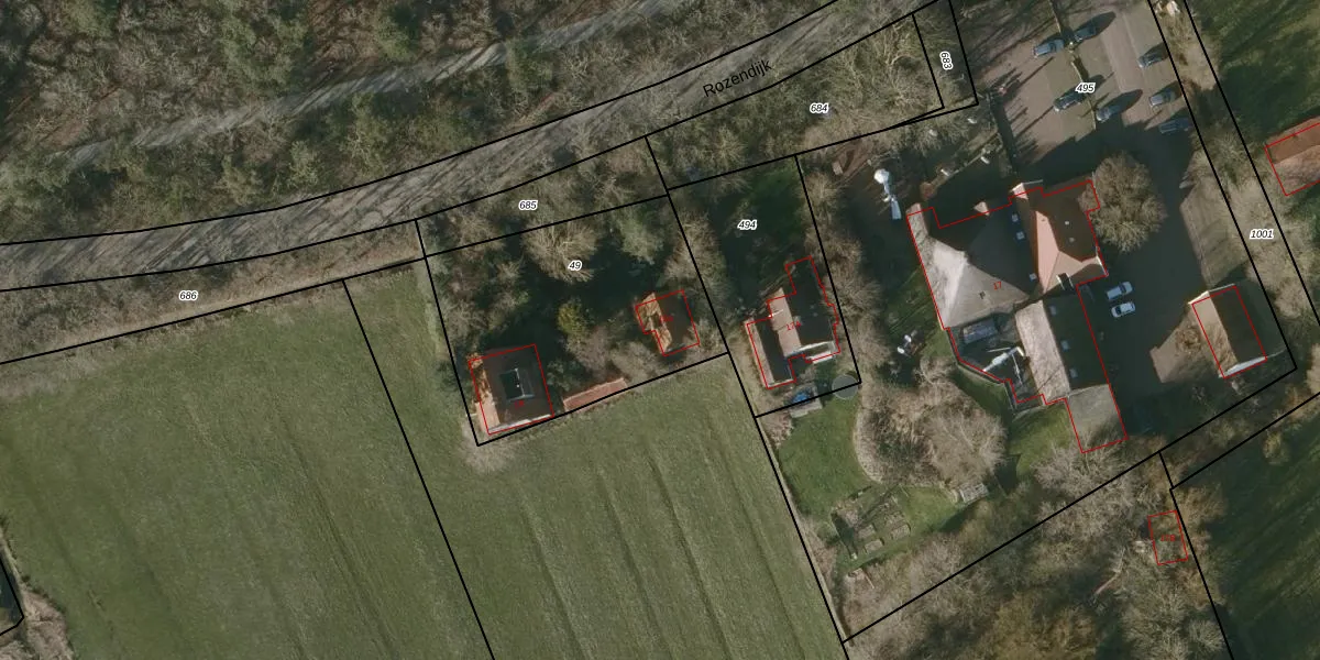 Het perceel waarop Rozendijk 19-A staat heeft een oppervlakte van 1110 m². Dit is een zeer groot perceel. De perceeloppervlakte wordt geregistreerd door het Kadaster. Gedetailleerde informatie over de maten van dit perceel kunt u vinden in het rapport Kadastrale kaart met maatvoering van Rozendijk 19-A.