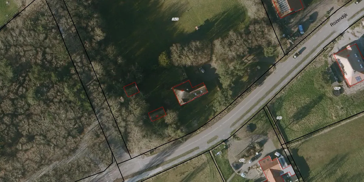 Het perceel waarop Rozendijk 34 staat heeft een oppervlakte van 1,0 ha. Dit is een zeer groot perceel. De perceeloppervlakte wordt geregistreerd door het Kadaster. Gedetailleerde informatie over de maten van dit perceel kunt u vinden in het rapport Kadastrale kaart met maatvoering van Rozendijk 34.