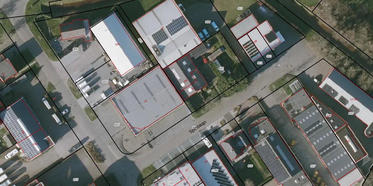 Het perceel waarop Spinbaan 16 staat heeft een oppervlakte van 1047 m². Dit is een zeer groot perceel. De perceeloppervlakte wordt geregistreerd door het Kadaster. Gedetailleerde informatie over de maten van dit perceel kunt u vinden in het rapport Kadastrale kaart met maatvoering van Spinbaan 16.