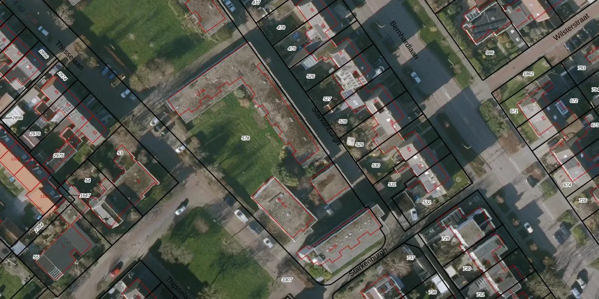 Het perceel waarop Starkenburgh 68 staat heeft een oppervlakte van 5373 m². Dit is een zeer groot perceel. De perceeloppervlakte wordt geregistreerd door het Kadaster. Gedetailleerde informatie over de maten van dit perceel kunt u vinden in het rapport Kadastrale kaart met maatvoering van Starkenburgh 68.