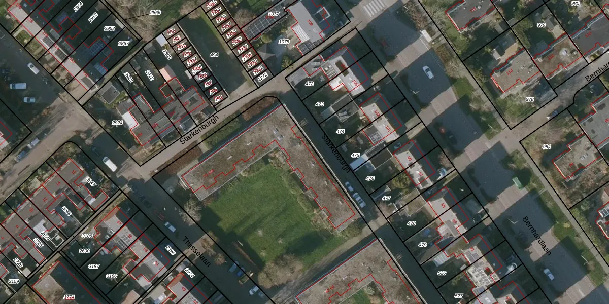Het perceel waarop Starkenburgh 76 staat heeft een oppervlakte van 5373 m². Dit is een zeer groot perceel. De perceeloppervlakte wordt geregistreerd door het Kadaster. Gedetailleerde informatie over de maten van dit perceel kunt u vinden in het rapport Kadastrale kaart met maatvoering van Starkenburgh 76.