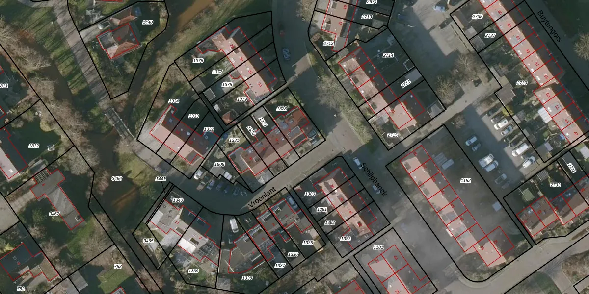 Het perceel waarop Vroonlant 2 staat heeft een oppervlakte van 233 m². Dit is een middelgroot perceel. De perceeloppervlakte wordt geregistreerd door het Kadaster. Gedetailleerde informatie over de maten van dit perceel kunt u vinden in het rapport Kadastrale kaart met maatvoering van Vroonlant 2.