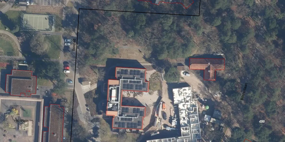 Het perceel waarop Boshutlaan 1-D staat heeft een oppervlakte van 13,0 ha. Dit is een zeer groot perceel. De perceeloppervlakte wordt geregistreerd door het Kadaster. Gedetailleerde informatie over de maten van dit perceel kunt u vinden in het rapport Kadastrale kaart met maatvoering van Boshutlaan 1-D.