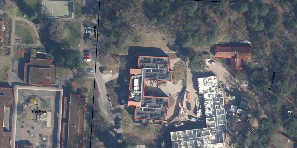 Het perceel waarop Boshutlaan 1-J-1 staat heeft een oppervlakte van 13,0 ha. Dit is een zeer groot perceel. De perceeloppervlakte wordt geregistreerd door het Kadaster. Gedetailleerde informatie over de maten van dit perceel kunt u vinden in het rapport Kadastrale kaart met maatvoering van Boshutlaan 1-J-1.