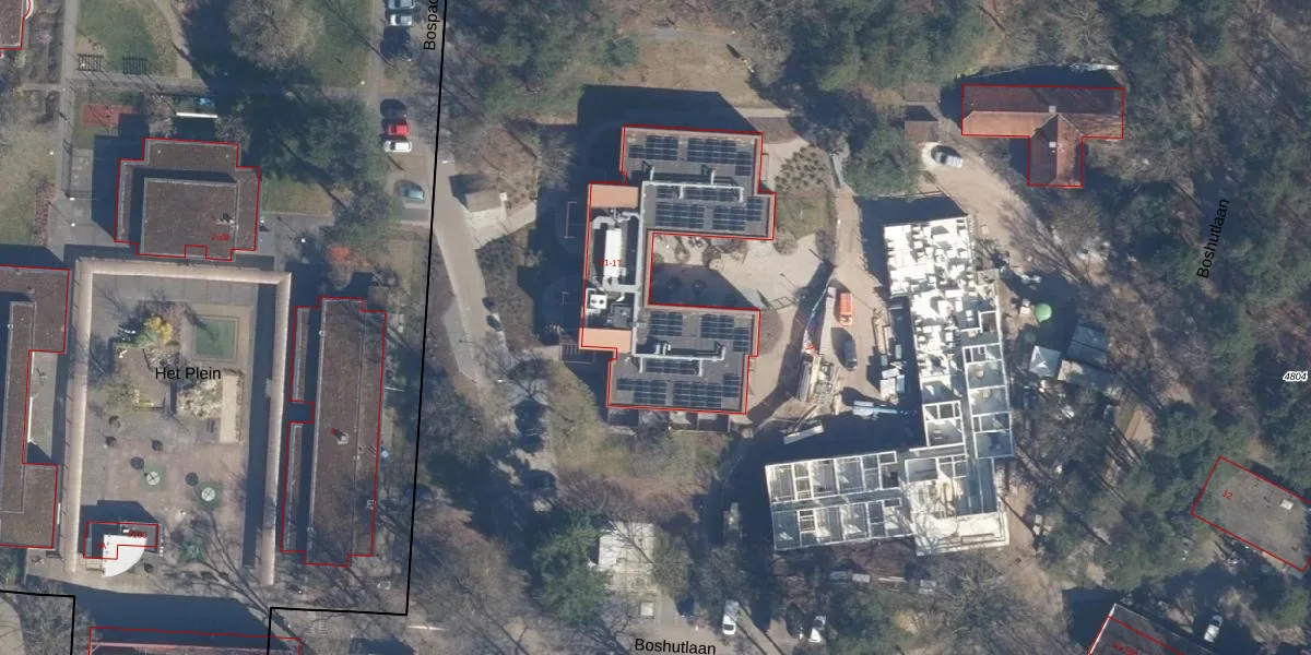 Het perceel waarop Boshutlaan 1-K-1 staat heeft een oppervlakte van 13,0 ha. Dit is een zeer groot perceel. De perceeloppervlakte wordt geregistreerd door het Kadaster. Gedetailleerde informatie over de maten van dit perceel kunt u vinden in het rapport Kadastrale kaart met maatvoering van Boshutlaan 1-K-1.