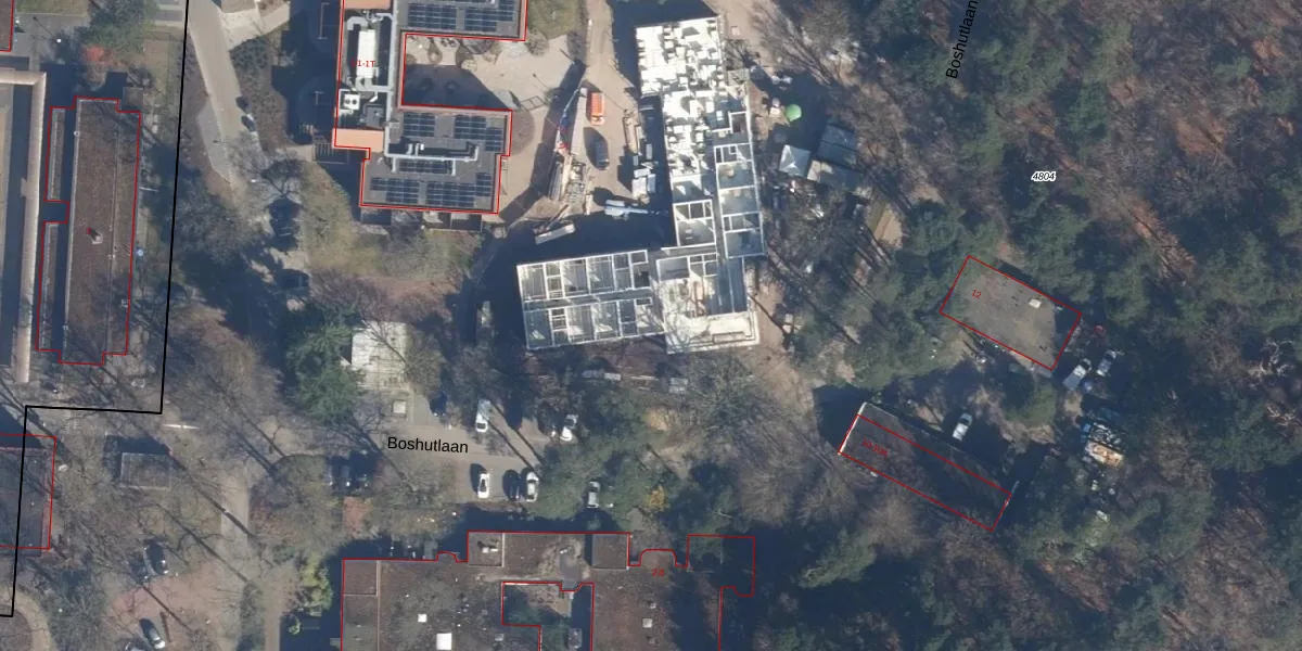 Het perceel waarop Boshutlaan 3-A-1 staat heeft een oppervlakte van 13,0 ha. Dit is een zeer groot perceel. De perceeloppervlakte wordt geregistreerd door het Kadaster. Gedetailleerde informatie over de maten van dit perceel kunt u vinden in het rapport Kadastrale kaart met maatvoering van Boshutlaan 3-A-1.