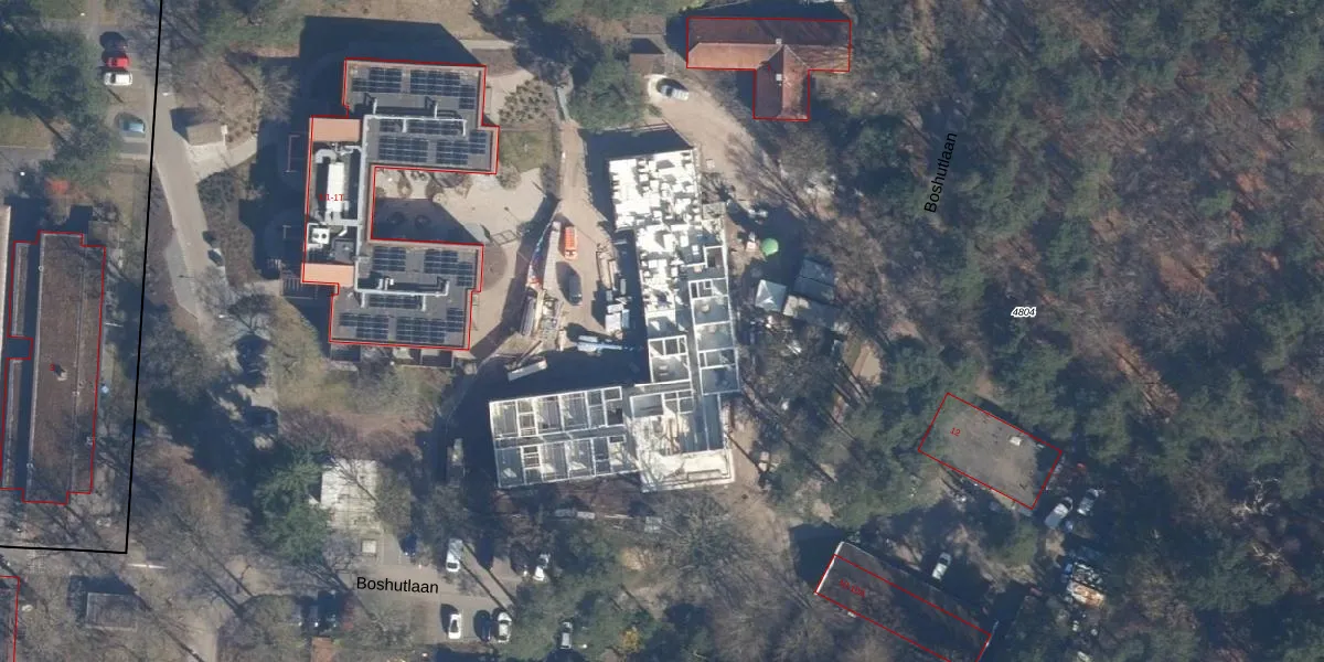 Het perceel waarop Boshutlaan 3-A-8 staat heeft een oppervlakte van 13,0 ha. Dit is een zeer groot perceel. De perceeloppervlakte wordt geregistreerd door het Kadaster. Gedetailleerde informatie over de maten van dit perceel kunt u vinden in het rapport Kadastrale kaart met maatvoering van Boshutlaan 3-A-8.