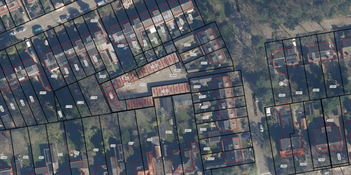 Dassenlaan 9015 is gelegen op kadastraal perceel ZEI00K3772. Deze kadastrale aanduiding is uniek en wordt gebruikt door het Kadaster om eigendomsrechten en andere zakelijke rechten vast te leggen. Het perceel maakt onderdeel uit van de kadastrale gemeente Zeist.
