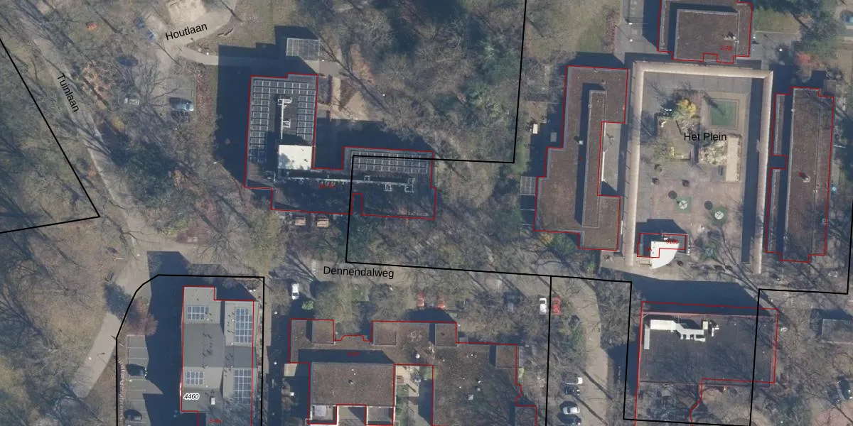 Het perceel waarop Dennendalweg 1-C staat heeft een oppervlakte van 3,0 ha. Dit is een zeer groot perceel. De perceeloppervlakte wordt geregistreerd door het Kadaster. Gedetailleerde informatie over de maten van dit perceel kunt u vinden in het rapport Kadastrale kaart met maatvoering van Dennendalweg 1-C.