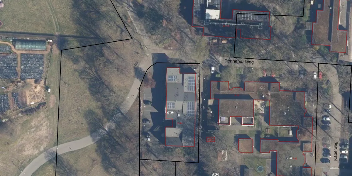 Het perceel waarop Dennendalweg 4-E staat heeft een oppervlakte van 1841 m². Dit is een zeer groot perceel. De perceeloppervlakte wordt geregistreerd door het Kadaster. Gedetailleerde informatie over de maten van dit perceel kunt u vinden in het rapport Kadastrale kaart met maatvoering van Dennendalweg 4-E.