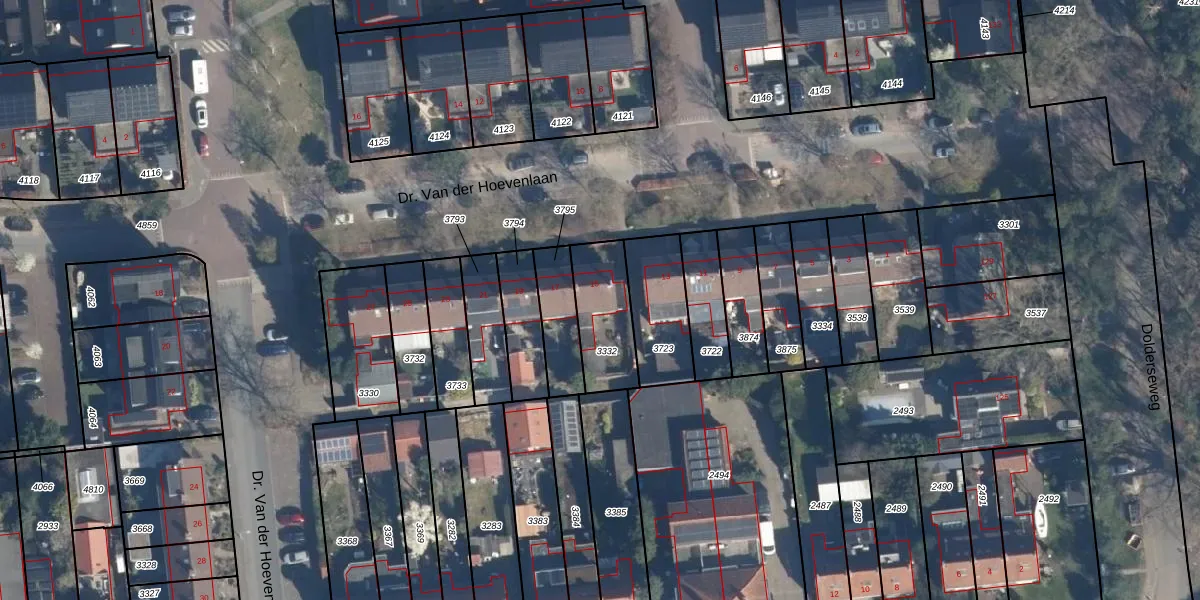 Dr. Van der Hoevenlaan 15 is gelegen op kadastraal perceel ZEI00A3332. Deze kadastrale aanduiding is uniek en wordt gebruikt door het Kadaster om eigendomsrechten en andere zakelijke rechten vast te leggen. Het perceel maakt onderdeel uit van de kadastrale gemeente Zeist.