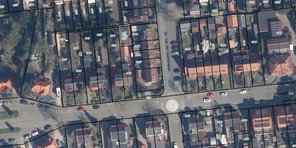 Dr. Van der Hoevenlaan 32 is gelegen op kadastraal perceel ZEI00A3326. Deze kadastrale aanduiding is uniek en wordt gebruikt door het Kadaster om eigendomsrechten en andere zakelijke rechten vast te leggen. Het perceel maakt onderdeel uit van de kadastrale gemeente Zeist.