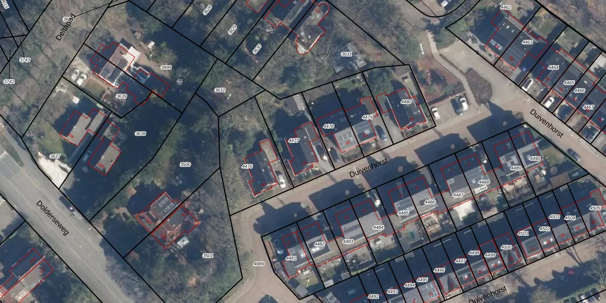 Het perceel waarop Duivenhorst 66 staat heeft een oppervlakte van 450 m². Dit is een groot perceel. De perceeloppervlakte wordt geregistreerd door het Kadaster. Gedetailleerde informatie over de maten van dit perceel kunt u vinden in het rapport Kadastrale kaart met maatvoering van Duivenhorst 66.