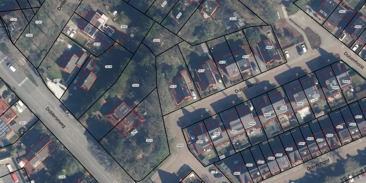 Het perceel waarop Duivenhorst 68 staat heeft een oppervlakte van 610 m². Dit is een groot perceel. De perceeloppervlakte wordt geregistreerd door het Kadaster. Gedetailleerde informatie over de maten van dit perceel kunt u vinden in het rapport Kadastrale kaart met maatvoering van Duivenhorst 68.
