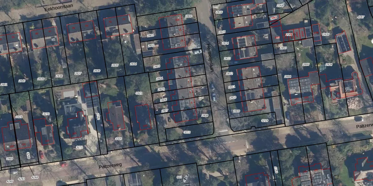 Hermelijnlaan 5 is gelegen op kadastraal perceel ZEI00K2806. Deze kadastrale aanduiding is uniek en wordt gebruikt door het Kadaster om eigendomsrechten en andere zakelijke rechten vast te leggen. Het perceel maakt onderdeel uit van de kadastrale gemeente Zeist.
