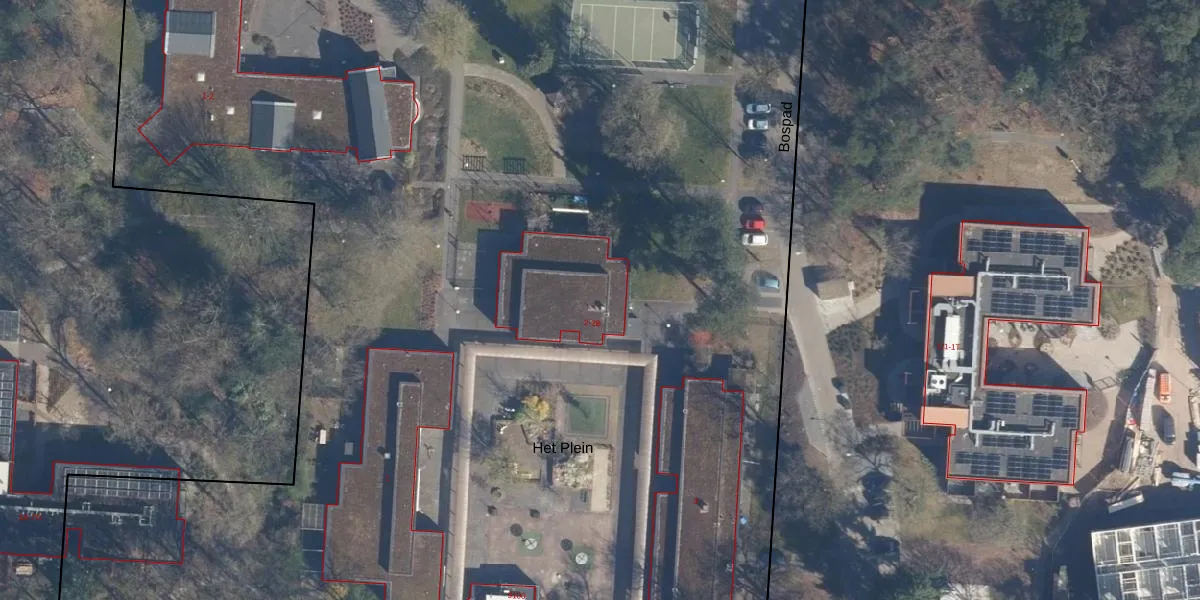 Het perceel waarop Het Plein 2-B staat heeft een oppervlakte van 3,0 ha. Dit is een zeer groot perceel. De perceeloppervlakte wordt geregistreerd door het Kadaster. Gedetailleerde informatie over de maten van dit perceel kunt u vinden in het rapport Kadastrale kaart met maatvoering van Het Plein 2-B.