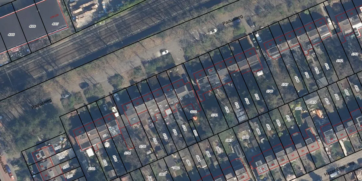 Het perceel waarop Paduaweg 57 staat heeft een oppervlakte van 406 m². Dit is een groot perceel. De perceeloppervlakte wordt geregistreerd door het Kadaster. Gedetailleerde informatie over de maten van dit perceel kunt u vinden in het rapport Kadastrale kaart met maatvoering van Paduaweg 57.