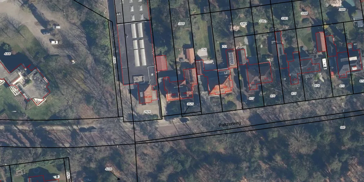Het perceel waarop Paltzerweg 165 staat heeft een oppervlakte van 1199 m². Dit is een zeer groot perceel. De perceeloppervlakte wordt geregistreerd door het Kadaster. Gedetailleerde informatie over de maten van dit perceel kunt u vinden in het rapport Kadastrale kaart met maatvoering van Paltzerweg 165.