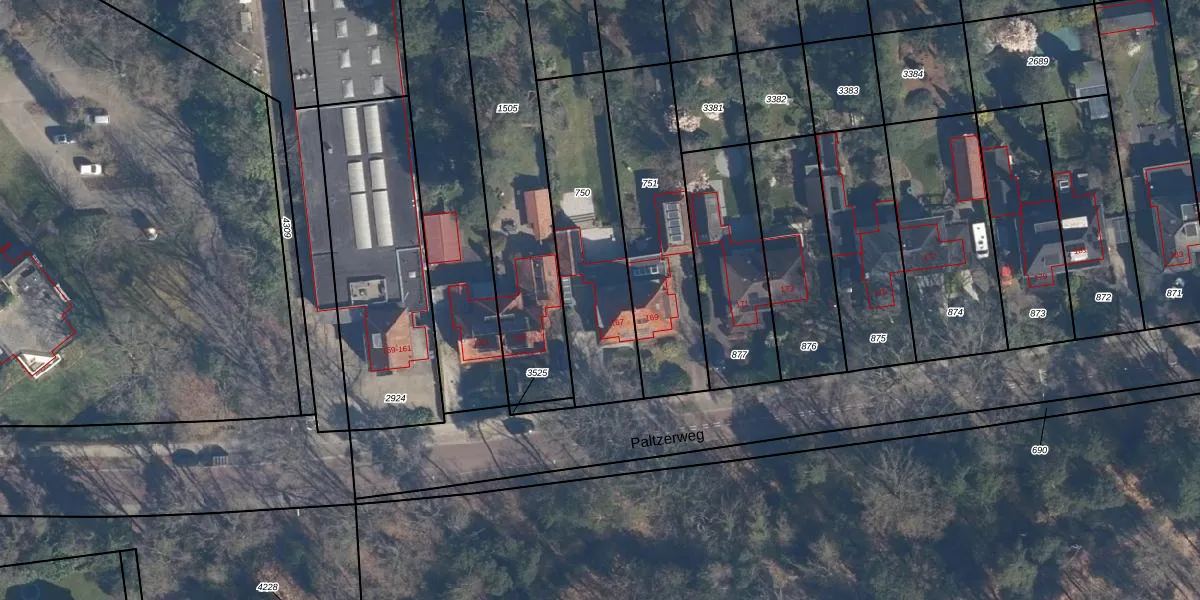 Het perceel waarop Paltzerweg 167 staat heeft een oppervlakte van 628 m². Dit is een groot perceel. De perceeloppervlakte wordt geregistreerd door het Kadaster. Gedetailleerde informatie over de maten van dit perceel kunt u vinden in het rapport Kadastrale kaart met maatvoering van Paltzerweg 167.