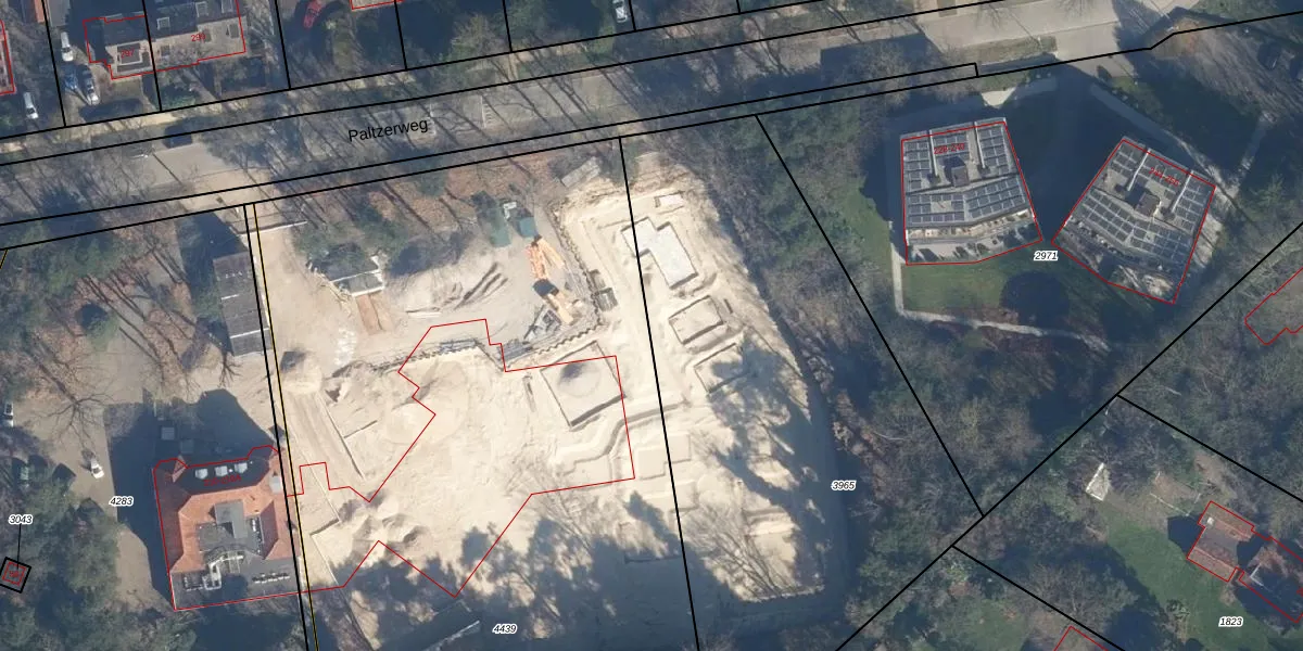 Het perceel waarop Paltzerweg 218-A-E staat heeft een oppervlakte van 2946 m². Dit is een zeer groot perceel. De perceeloppervlakte wordt geregistreerd door het Kadaster. Gedetailleerde informatie over de maten van dit perceel kunt u vinden in het rapport Kadastrale kaart met maatvoering van Paltzerweg 218-A-E.