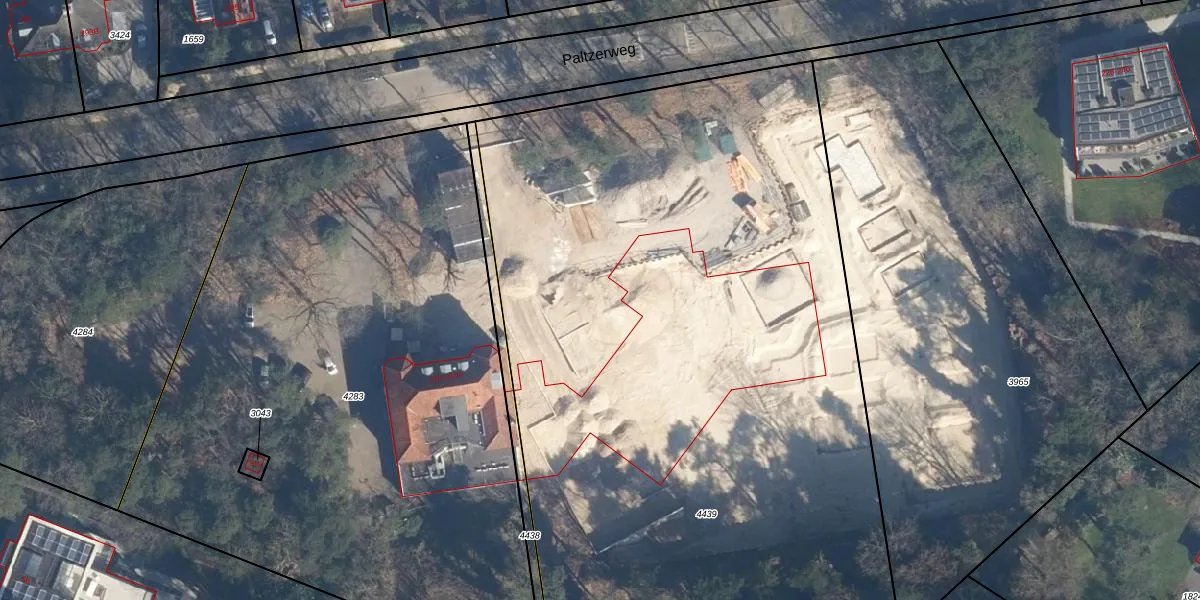 Het perceel waarop Paltzerweg 220-E staat heeft een oppervlakte van 6017 m². Dit is een zeer groot perceel. De perceeloppervlakte wordt geregistreerd door het Kadaster. Gedetailleerde informatie over de maten van dit perceel kunt u vinden in het rapport Kadastrale kaart met maatvoering van Paltzerweg 220-E.