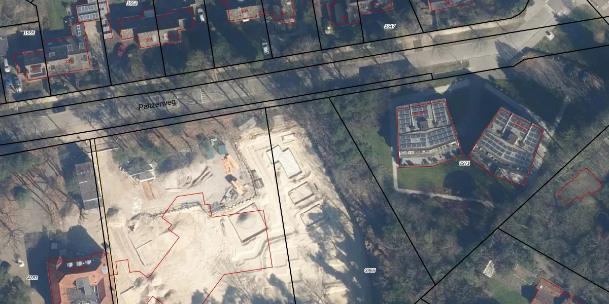 Het perceel waarop Paltzerweg 222-R staat heeft een oppervlakte van 2946 m². Dit is een zeer groot perceel. De perceeloppervlakte wordt geregistreerd door het Kadaster. Gedetailleerde informatie over de maten van dit perceel kunt u vinden in het rapport Kadastrale kaart met maatvoering van Paltzerweg 222-R.