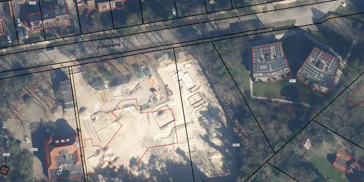 Het perceel waarop Paltzerweg 222-W staat heeft een oppervlakte van 2946 m². Dit is een zeer groot perceel. De perceeloppervlakte wordt geregistreerd door het Kadaster. Gedetailleerde informatie over de maten van dit perceel kunt u vinden in het rapport Kadastrale kaart met maatvoering van Paltzerweg 222-W.