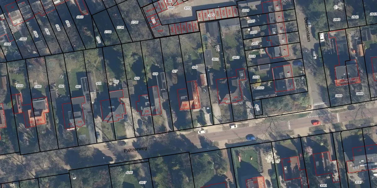 Het perceel waarop Paltzerweg 241 staat heeft een oppervlakte van 575 m². Dit is een groot perceel. De perceeloppervlakte wordt geregistreerd door het Kadaster. Gedetailleerde informatie over de maten van dit perceel kunt u vinden in het rapport Kadastrale kaart met maatvoering van Paltzerweg 241.